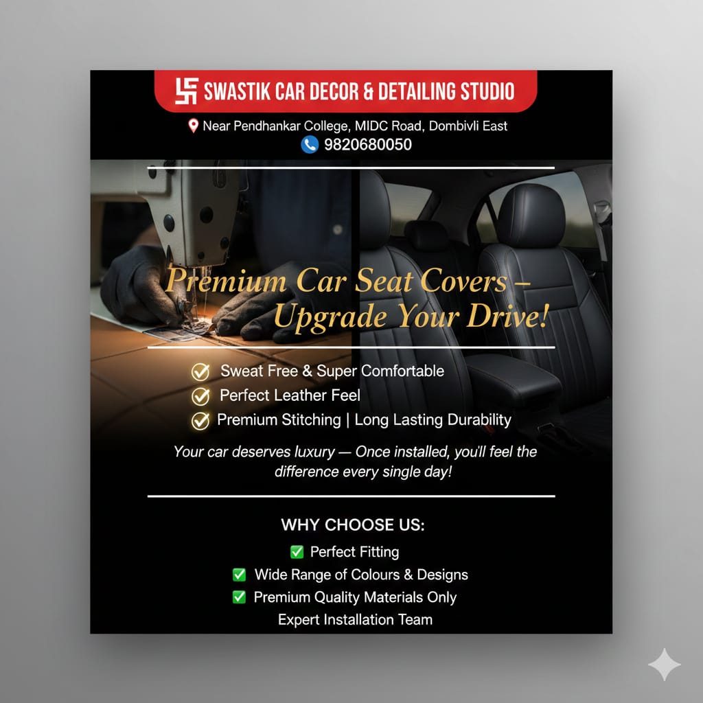 Welcome to Swastik Car Decor and Detailing Studio, your trusted destination for top-notch car care and customization. Established in 2006, we have been serving car enthusiasts with our high-quality services and expert solutions for over 15 years. Located at the heart of the Dombivli East Mumbai city, we are dedicated to enhancing the appearance, performance, and overall experience of your vehicle. At Swastik Car Decor and Detailing Studio, we sp ... View More